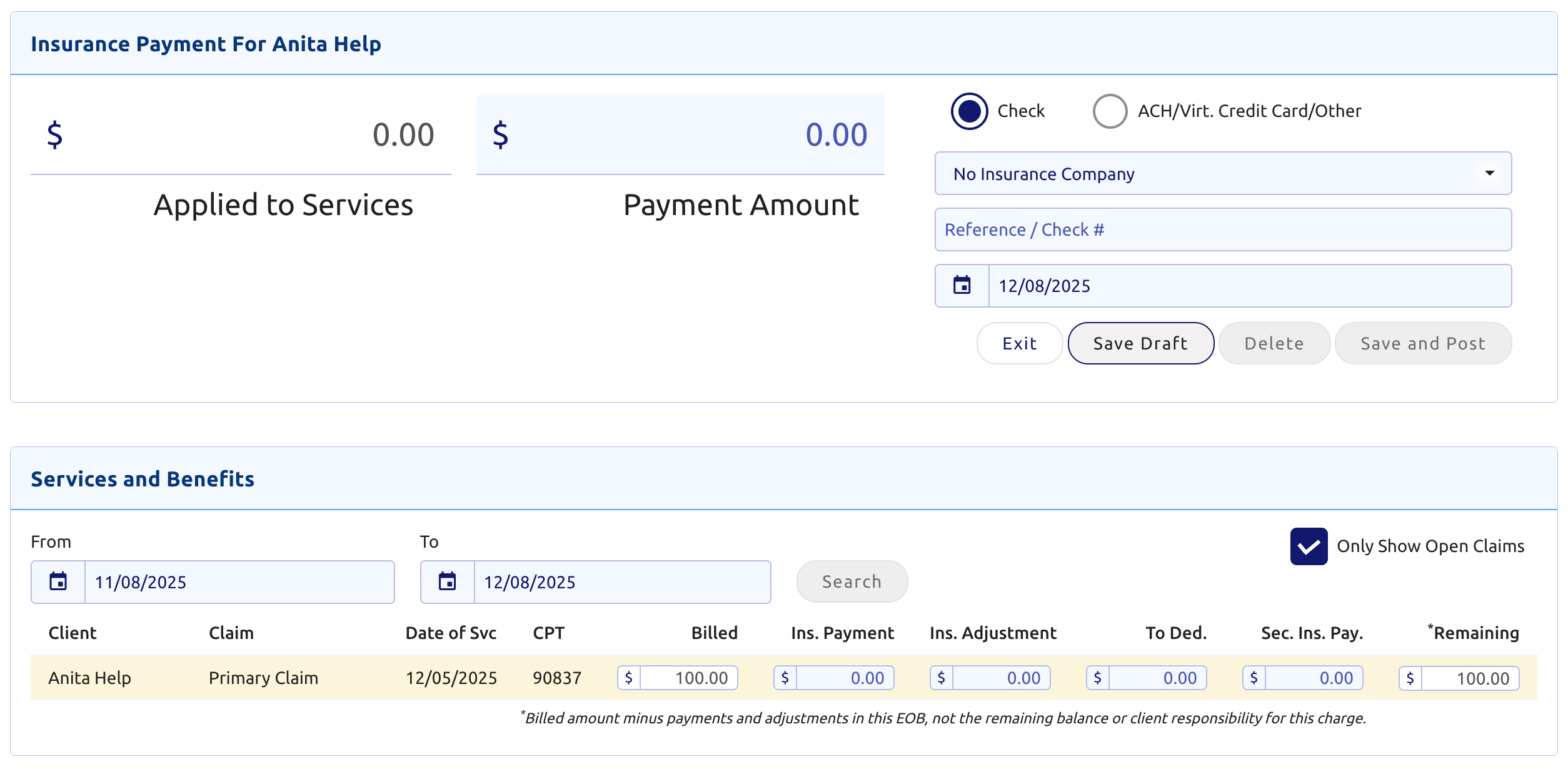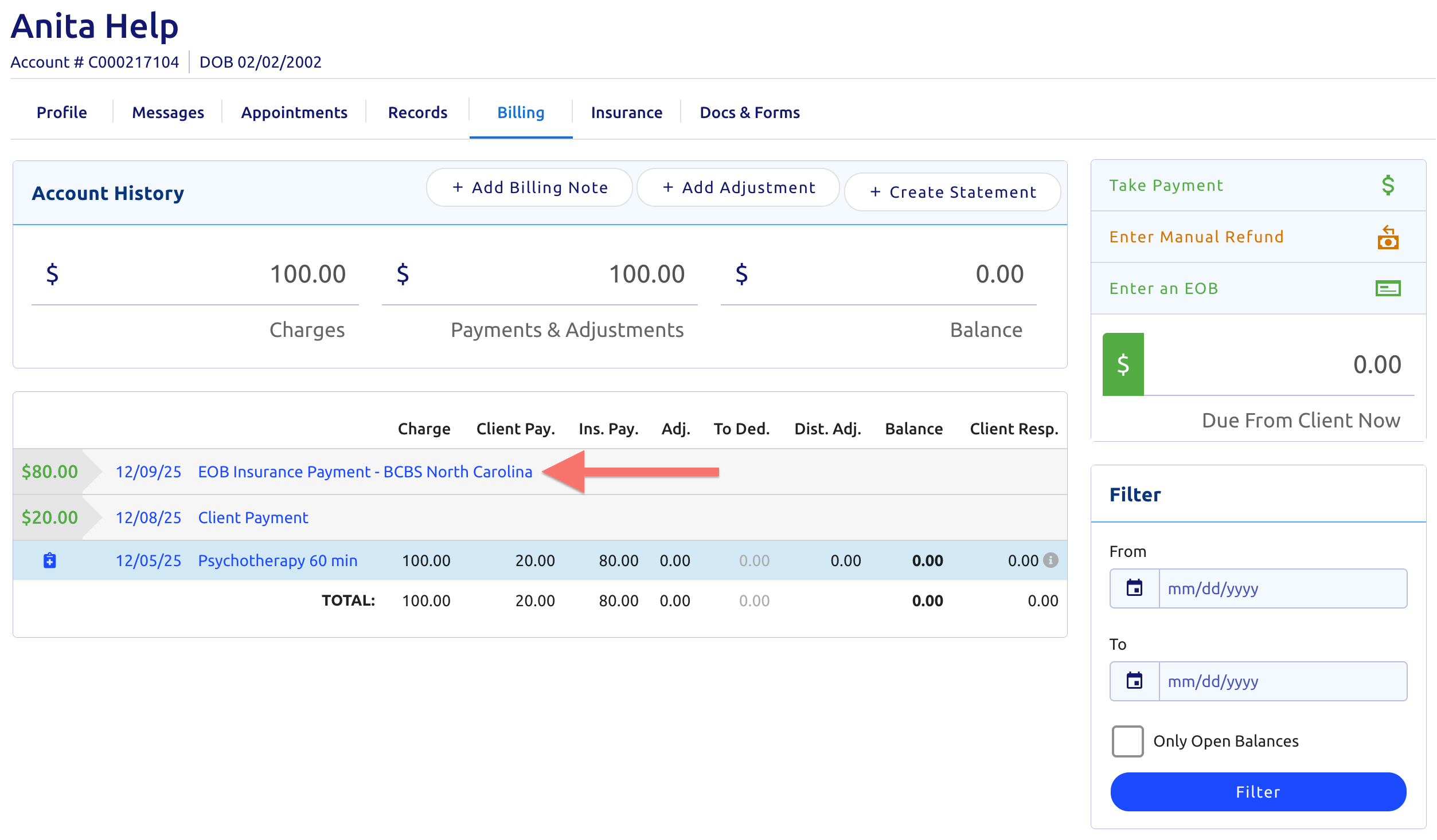 Read on below where we explain how to enter individual client Explanation of Benefits (EOB) into the system.