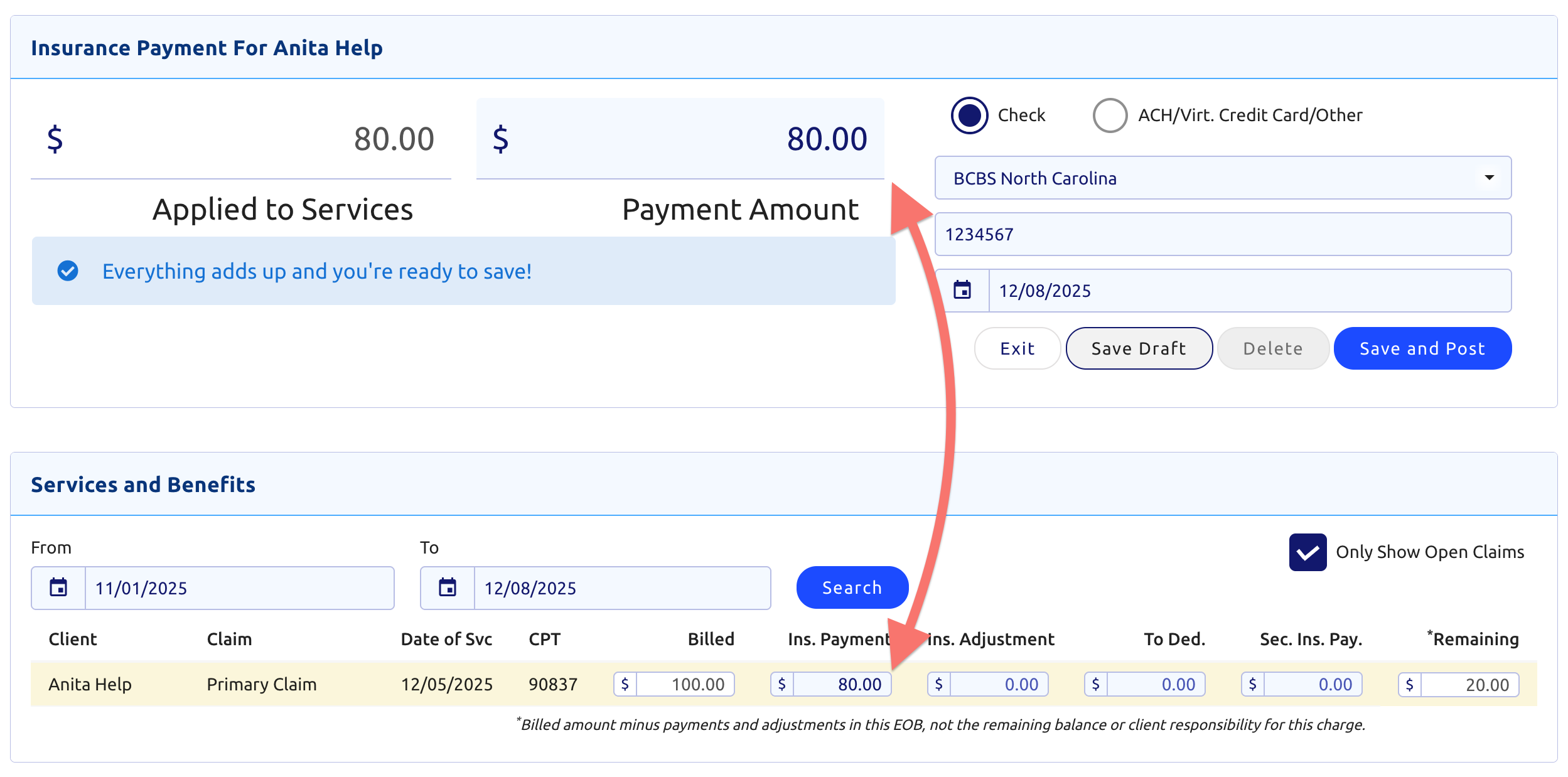 Looking to manage payment amounts from an insurance company for a specific date of service?