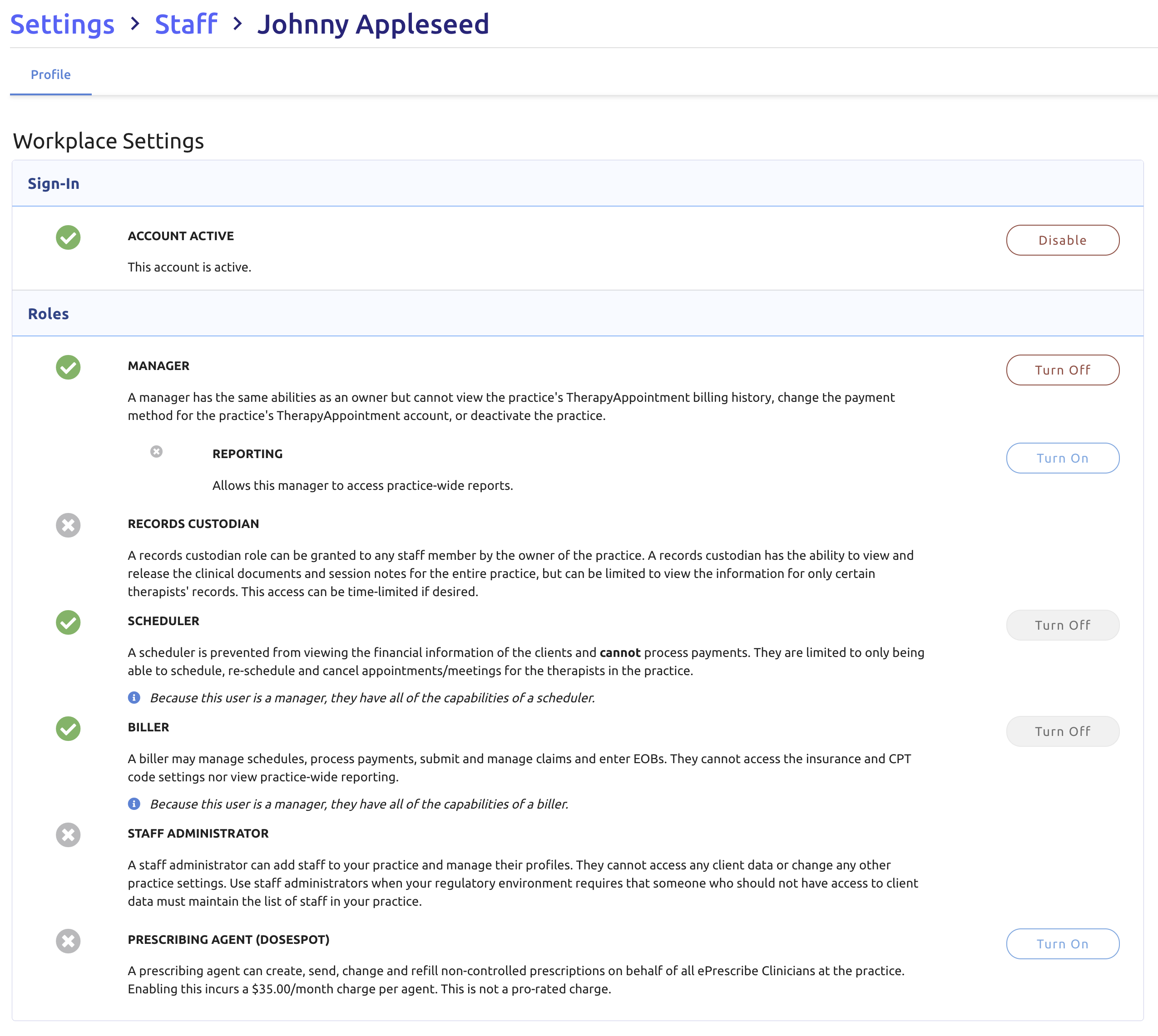 - There is also a reporting sub role if they need access to reports (including financial) as well
