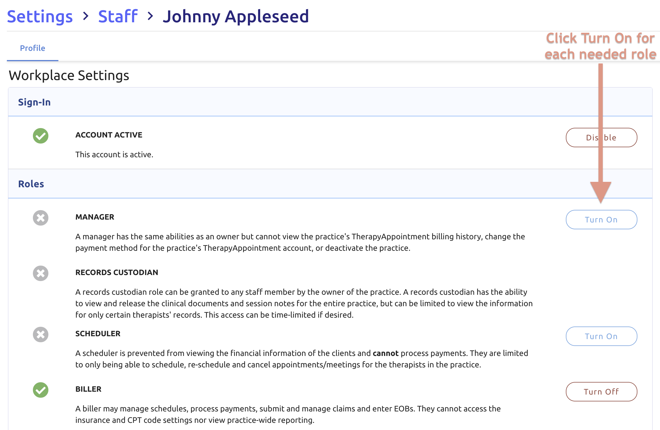 - Click Staff (top tab)