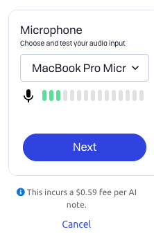 You can use our in person option if your microphone can also hear their voice (like with speakers), or select the Telehealth option to record your telehealth system's audio so AI charting can hear it.