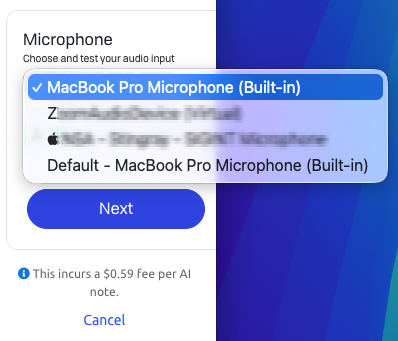 - Next you'll see this audio input option, allowing you to pick from any available system microphones: