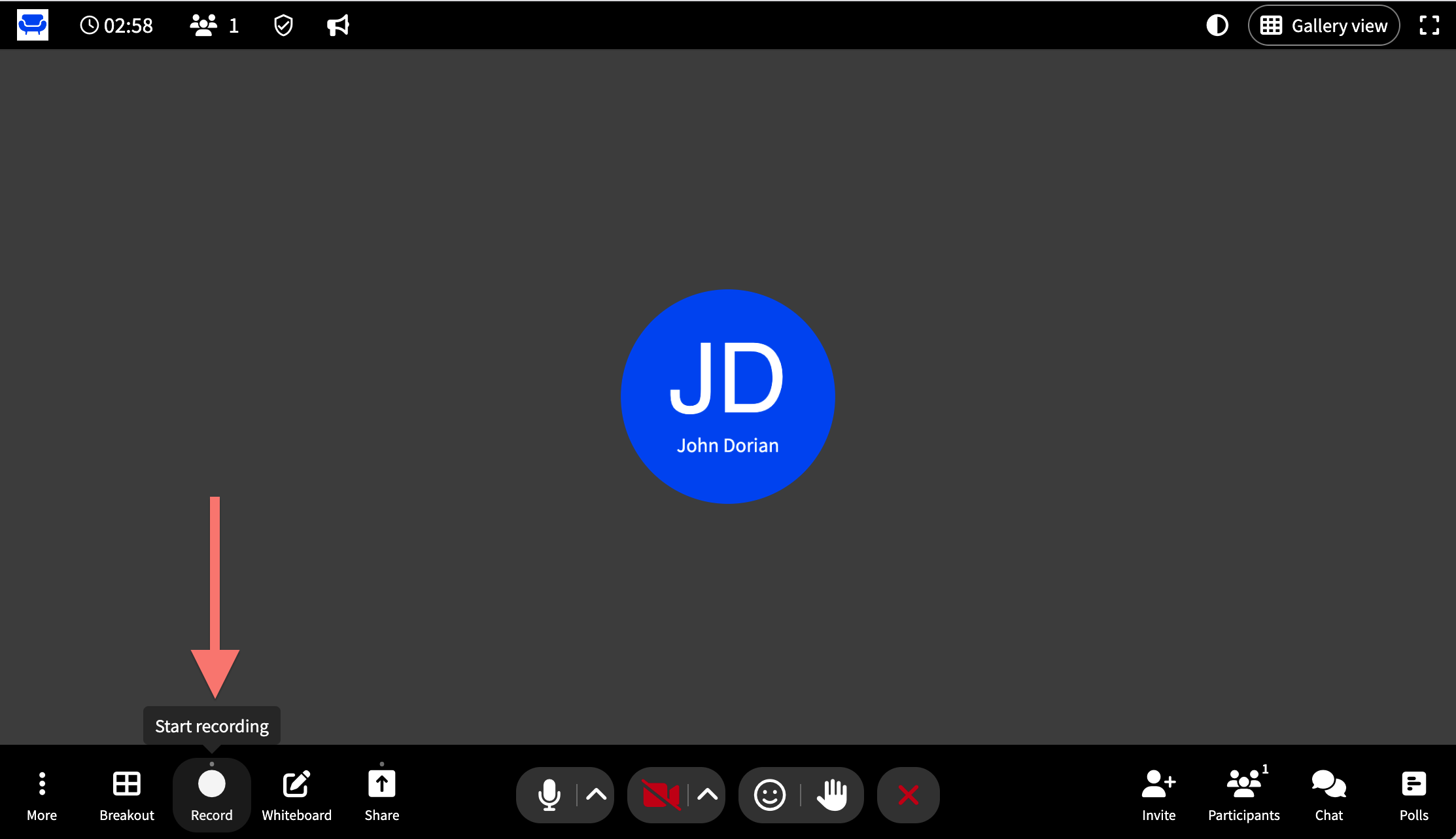 - Once you join the telehealth session, click the bottom button Record shown here: